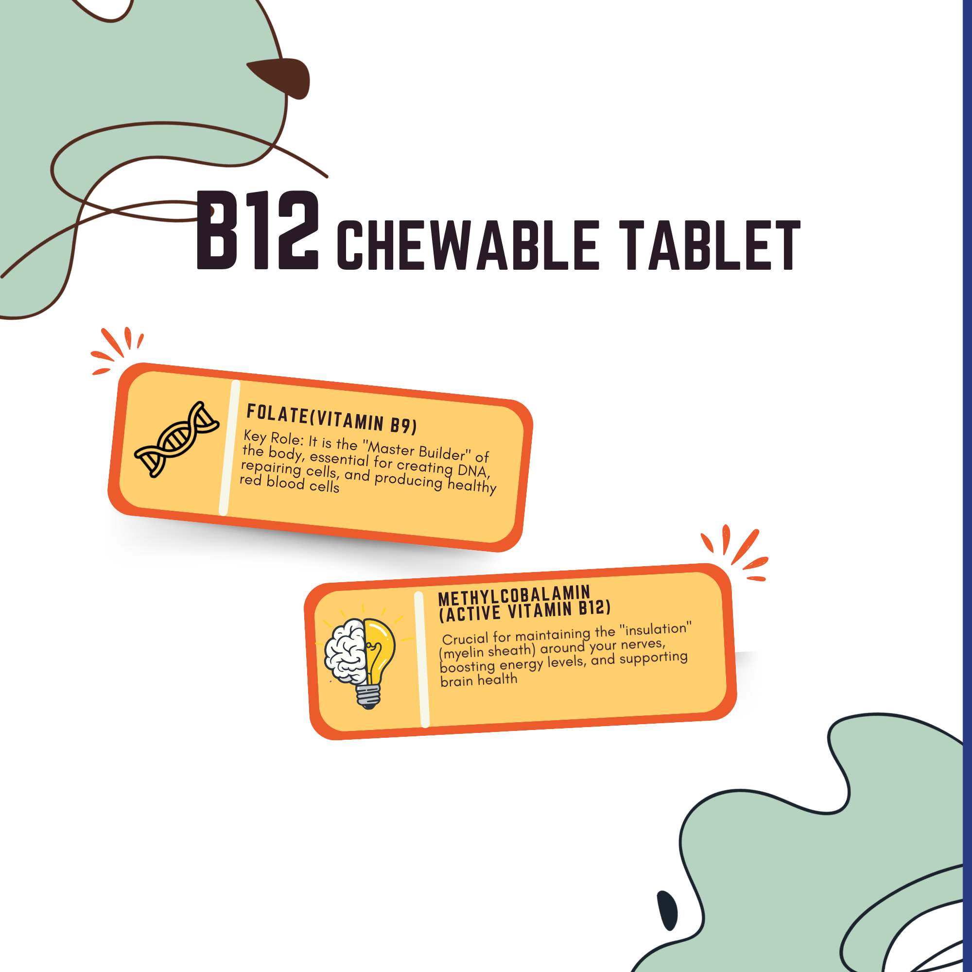 Our chewable formulation ensures superior bioavailability compared to traditional tablets, making it ideal for those with absorption concerns or busy lifestyles. Each serving provides concentrated B12 to combat deficiency symptoms and support cognitive clarity, stamina, and overall vitality.